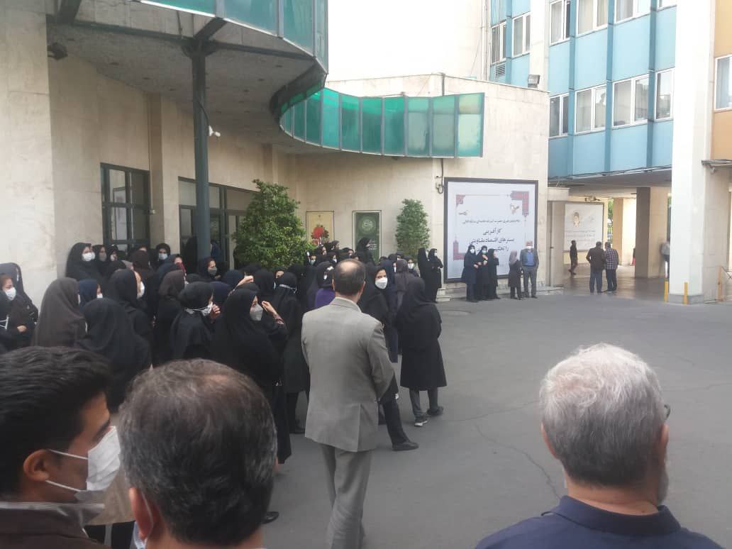 جمعی از کارکنان وزارت کار در محوطه این وزارتخانه تجمع کردند.