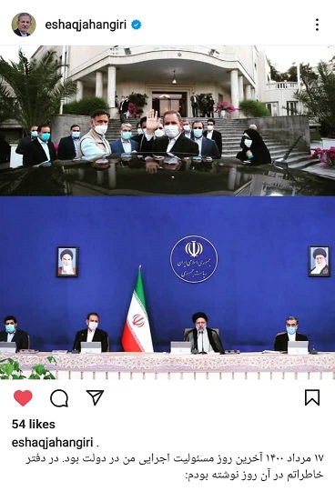 اسحاق جهانگيرى در اينستاگرام خود نوشت: