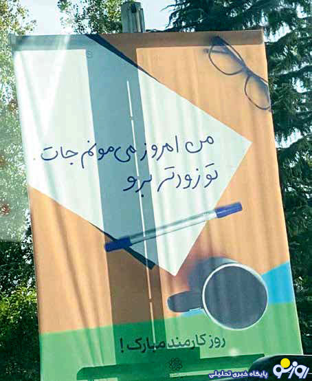 روزنو :دیروز تصویر بنر عجیبی که شهرداری تهران به مناسبت روز کارمند در سطح شهر نصب کرده بود مورد نقد بسیاری از کاربران فضای مجازی قرار گرفت. در این بنر نوشته شده بود: «من امروز میمونم جات، تو زوتر برو» و در نهایت روز کارمند با علامت تعجبی در مقابل آن تبریک گفته شده بود!