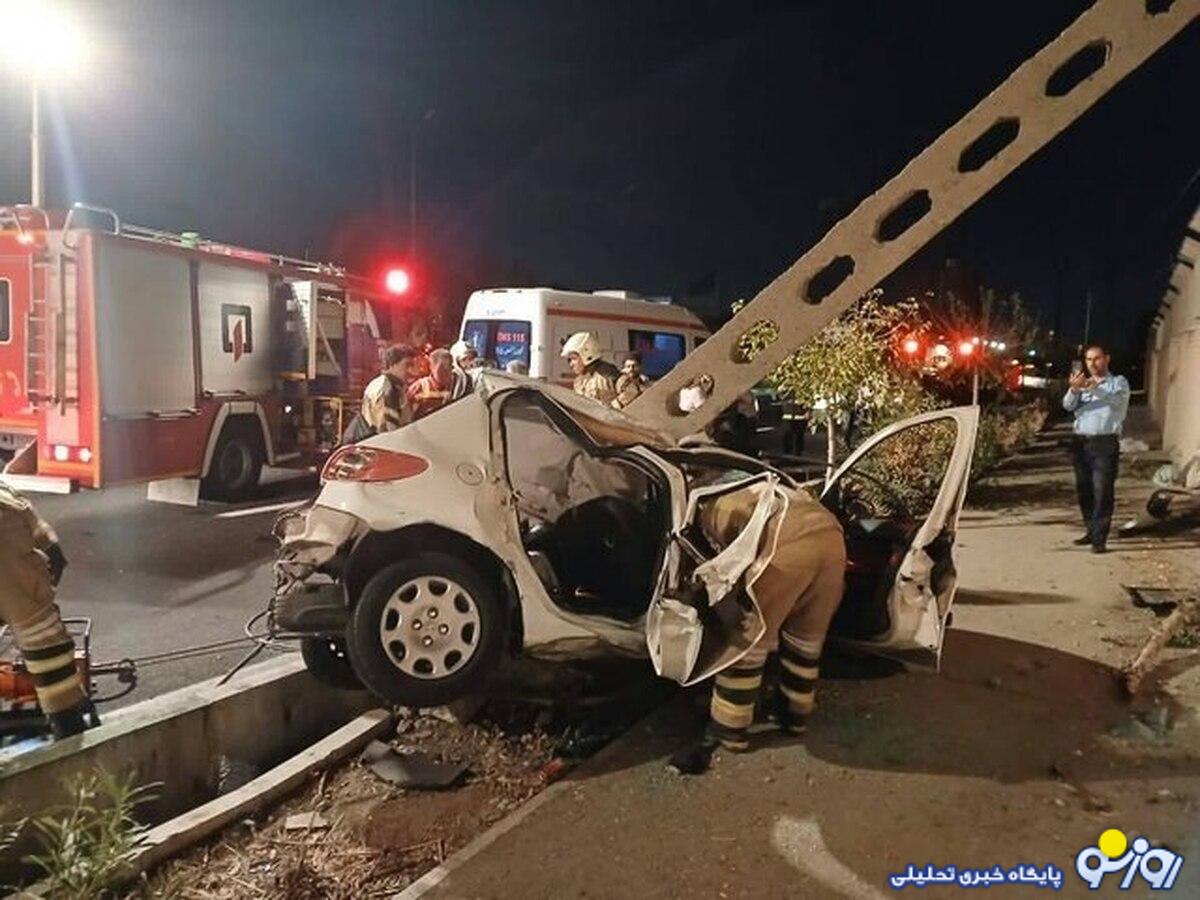 برخورد هولناک پژو ۲۰۶ با تیر برق؛ ۴ کشته و مصدوم