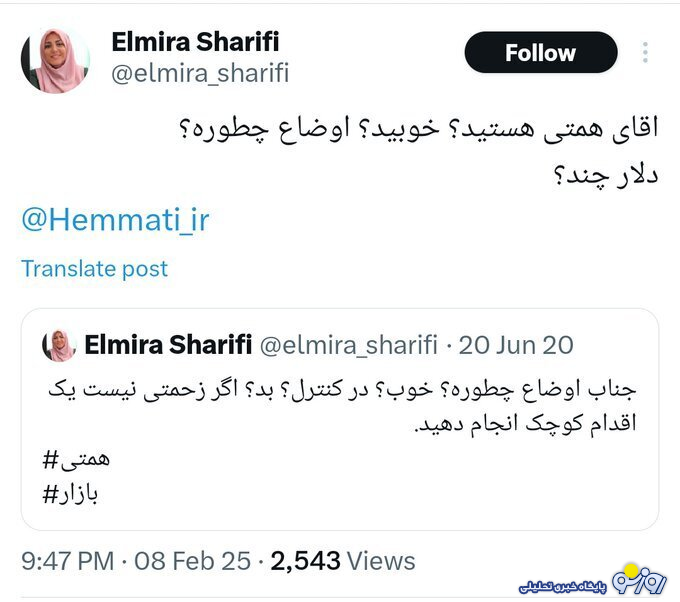 عکس/ توییت عجیب المیرا شریفیمقدم درباره قیمت دلار