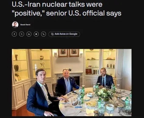 خبرنگار اکسیوس گزارش داده به نقل از منابع آمریکایی که روند مذاکرات مثبت بوده است. با این حال، بر گزارش پیشین خود تأکید کرده است که لااقل تا اواسط روند روز پنجشنبه، ویتکاف و کوشنر از مواضع ایران ناراضی بودند.